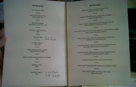 Our host has a real soft spot for Sauternes so this is where we went next with a wine I have never had before and may well never have again – Yquem 1943 – it was decanted briefly before serving and was at stage I love, honeyed and toffeed with a tart freshness on the finish, real creme brulee flavours. We then went to 1934 Gilette & Yquem 1988 – I made no mental note of the Gilette other than that it was very good, more youthful in colour than the 1943. The Yquem 1988 was brilliant, I have not has the ’88 before, the ’89 and ’90 steal the attention but the ’88 is so fresh and balanced that in my opinion it is so near those other two vintages that it is something of a bargain.