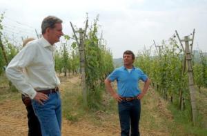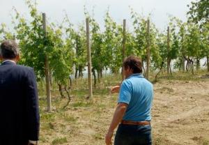 here from the pictures but in reality it is far steeper than it looks. The vineyard faces west south west and even though it was a very hot muggy day for May you had a cooling breeze coming up the slope towards us. The Barbera is on the lower slopes.