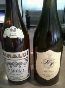 We had one white and one red. The white was 2007 Chardonnay from Hyde de Villaine in Carneros. I have shown this blind a few times and the elegance and poise always means people say burgundy, Alex thinking Puligny, I though Meursault last time I had it blind. Either way decanted it was delicious with an array of starters (always the way to do it at Zucca). For the red (to go with a mammoth Veal chop in my case) I wasn’t going to miss the chance to further explore the wonderful Piedmont list. This time I opted for one of the growers I buy blind for myself every year now – Guiseppe (Beppe) Rinaldi – it was his 2005 Barolo Brunate-Le Coste, I expected it to be enjoyable but obviously too young and whilst I will keep the case or two I have for a long while yet I was staggered at it’s balance and openness now…a very classy bottle. If you can find his wines I strongly recommend buying them, failing that get to Zucca and try them there.