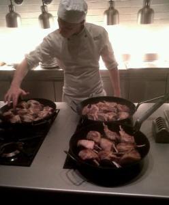 With the delicious secondi Piatti – Rack of Lamb (see right) with spicy fregola, chickpeas and passion fruit sauce – we then had the 1994 & 1996 – the 1994 was the most pleasant surprise of the evening and apparently is a wine Piero Antinori often uses when showing off the estate. It had superb balance, was really moreish, complex and at a lovely stage. The 1996 was, as mentioned above, a little more taut but it did over time give more aroma away, it was the one wine that really needed the decanting.