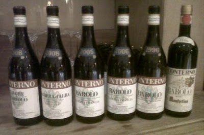 From there the 14 of us were seated and started on Veal Carpaccio, rocket, parmesan and black truffle with this we had the two wines from the new, well new to Roberto from this vintage (2008), vineyard of Cerretta – the wines were the Barbera and the Langhe Nebbiolo. First up Barbera Cerretta 2008, this was several peoples surprise wine of the night, such fruit but also a savoury edge and real substance, a seriously under-rated wine, this is on clay and shows richness…if only people took Barbera a little more seriously. The second wine was the almost unique Langhe Nebbiolo Cerretta 2008, I say almost unique as there is likely (90%) to be a Langhe Nebbiolo in 2009 too. Although the 2009 will be released next year after 3 years in barrel rather than the 2008’s 2 years. Both wines could be Barolo, technically and in quality, but this being Roberto only the very best will do. The Langhe Nebbiolo Cerretta 2008 is stunning, I love it, a Volnay of a Barolo that isn’t actually a Barolo if that makes sense, this is no novelty. Next up was the obligatory Mushroom risotto with a pair I have had many times and was to have both nights but I will never ever tire of them. Barolo Cascina Francia 2005 & 2006 the former has amazing accessible balance, the later is so classically correct, structured with lifted fruit, a must for Barolo lovers, I’ve bought a lot of 06’s so also always a relief too! I will repeat something here that Roberto said and that is that 2005 is a good and consistent (across the region) year as it was pretty easy, 2006 whilst technically better is less consistent as there was great ripeness, great tannin and more excess so the balance was harder to strike…there are people out there who have produced better 2005’s than 2006’s.