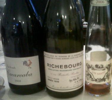 First up was the white which I cruelly served blind, the stab at it was good with white Rhone the shout…in fact it was white Rioja – Que Bonito Cacaraeba 2008 from Benjamin Romeo – but I like to think I’d have said the same, the texture and waxy peach-like fruit reminded me of rhone. Either way it was a good start. The blend is Viura, Malvasia and Garnacha Blanca in what may as well be equal thirds. From white we were on to the real deal…my guests very kind contribution…Richebourg 1998 from Domaine de la Romanee Conti. I have tasted this before but not since release 11 years ago and certainly only to sniff back then.