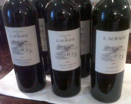 Had a quick tasting with Louis Mitjavile, son of Francois, last Thursday. Louis is a great guy, with a driven calm if that makes any sense. Having been involved in lots of projects in Bordeaux and heavily involved at both Roc de Cambes and Tertre-Roteboeuf he wanted his own “wine baby”. He also did not want to clash with anywhere that he has “business” at the moment so Cotes de Castillon (as of 2009 Castillon, Cotes de Bordeaux) was a prime target. Louis managed this by finding a great estate just in the appellation but very near the St.Emilion border. His “new” wine, Domaine de L’Aurage (as of 09 just L’Aurage) was born. To my mind there are two key Mitjavile principles. Firstly, they harvest very late, it is all about the ripeness of the tannins, acidity is of no interest and ripe tannins with slighlty over ripe fruit is preferable to the opposite. Secondly, they never make second wines, they do a lot of work early on in the vineyard but never do a green harvest and it is either in the first wine or not…L’Aurage is 19hectares in all with 5600 plants per hectare the first wine was 2007 which we tasted on this day…