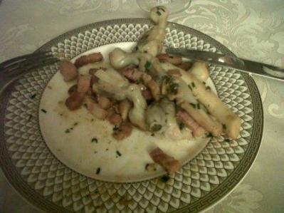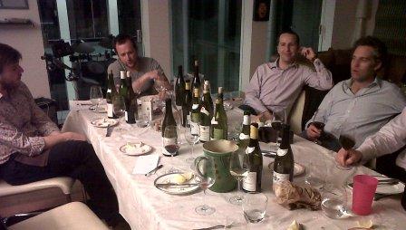 By this time we were on to the biggest plate of razor clams with bacon that I have ever had, delicious. The next two Chevalier’s were Chevalier-Montrachet Grand Cru, Sauzet & Chevalier-Montrachet Grand Cru, Niellon. For the former I have a good score and a note that says “refined, rich, classy element. Lemon edge, taut, composed.” and of the later I wrote “a strange but not unpleasant note of cucumber (not my shout but a good one), elegant, nervy, very fine”. So this was the tasting side of things over. Our very kind host then dug into the Eurocave and got out some older bottles but before discussing them, do I have a view on 2008 White Burgundies? I thought the acidity was whilst good not as high as I expected. I think this is a slightly awkward “inbetweeny” time to taste as the wines are neither very young nor nearing true maturity. It did make me think that it is a good vintage and one to follow but as ever with white Burgundy these days it is a vintage to be careful with. I found the actual tasting surprisingly hard, my vocab is not so good with whites as reds anyway but the wines are more easily judged in side your head than on paper. As with all wines it is best and easiest to judge a wine by drinking a glass/bottle/magnum of it!