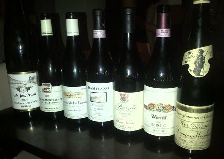 Last evening was a good chance to have a relaxed midweek wine dinner at The Salt Yard in Goodge street, what I will call good European tapas. Very wine friendly with good, not over fussy, service and a nice atmosphere. Sussex (you can seem him in other posts) supplied all but one of the wines, which was the Prum brought by Burdhoud. We were six in total which was a great number for the seven wines we had. We kicked off with a magnum of Wehlener Sonnenuhr Spatlese 2009 from Prum, these mags are seriously splendid looking bottles, not easily chilled down but visually great and a bottle of Riesling is never enough! The wine was just open enough, not reductive (stinky) which Prums can be when young. I really enjoyed the balance and completeness of the wine, it has a way to go but there is no harm in drinking it now.