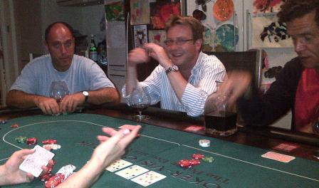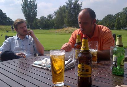 Last friday was a great day, the title of this post kind of gives it away. Golf at Wimbledon Park (right opposite the tennis) was a delight, I’ve played there a few times with our host and organiser for the day Eric. It is his home course and after a round of variable standard golf, mixed with the odd Carlsberg we were a little weary but very happy to have some Bulmers (apple for most, pear for Burnsie) and Youngs Bitter on the veranda. The course is one of Londons gems, 2 minutes walk from a tube and it feels like you are out of “the big smoke”. Having decanted ourselves, do you like what I’ve done there?, into two cars we headed back to base (Eric’s house) for a BBQ, much wine and Poker. Mr Burns settled us all down with some well mixed Pimms before the “serious” business started.