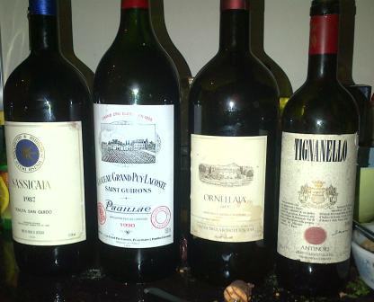 As poker was starting it was time for a couple more mags namely – Grand Puy Lacoste 1990 & Sassicaia 1987 – the former was deliciously balanced, perfect now, classic Pauillac, all those classic notes, black fruit, cigar box etc a joy. The Sassicaia on the other hand started nicely I thought, a little green but good green but half way though a glass it showed it was definitely corked. That sounds silly but it didn’t show initially but as it opened out it clearly was more that just musty. Our ever ready host had just the thing ready in the form of a magnum of Percarlo 1988. Really enjoyable, I was well beyond making notes, mental or otherwise but remember really enjoying it, further reassurance that 1988 tuscany is great stuff. On the tuscan theme Ornellaia 1987 in magnum was next followed by a bottle of Tignanello 1986. The former I don’t think I tried, the later was the most developed wine of the night almost aged-Barolo like in having a bacon like aroma, certainly in one piece but at it’s peak. One of my contributions was next Psi 2009 from Peter Sisseck, a wine that showed well albeit a change of pace, class and age from its predecessors.