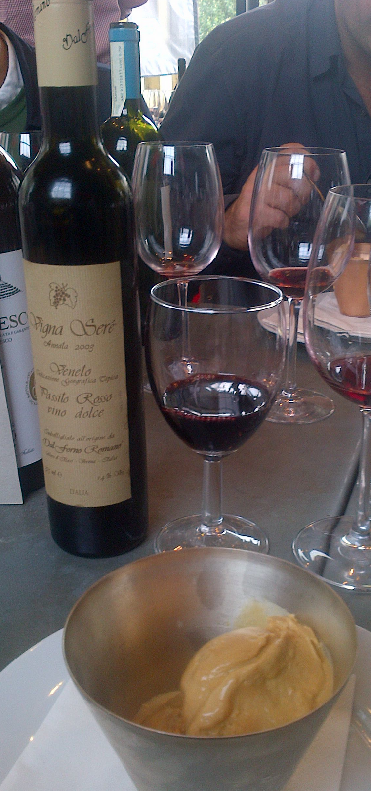 Conteisa 1999, Gaja both were enjoyable but as you would expect could not have been more different. The Giacosa was an elegant and feminine expression especially for Barolo but I think this is a good way to have dealt with the 2007 harvest. It was easy to make almost overripe, late harvest type, bruised fruit, wines and whilst this may not make old bones I feel it is a good wine for the vintage. The Gaja was a foursquare wine with an angular structure, good but probably never going to loosen up enough to be charming, proper stuff though and great with the beef. We then had what read on the menu as one of those “this’ll never work” combunations – Salt caramel ice cream with Vigna Seré IGT Veneto 2003 Romano Dal Forno but do yo know what? It was awesome, both the brilliant richness of the ice cream and the elegant ripeness of the Dal Forno, a real tour de force. There was of course coffee to follow but by now it was most certainly cigar time, so courtesy of Eric it was time for a Hoyo Epicure No2 from 2001, mellow and lovely, I smoked it down to my fingers and then had a possibly even better Hoyo du Depute also, I think, from 2001. I felt slightly guilty for not trying the Grappa – Gaia & Rey NV but in reality it had been a splendid enough long lunch without the need for the hard stuff…