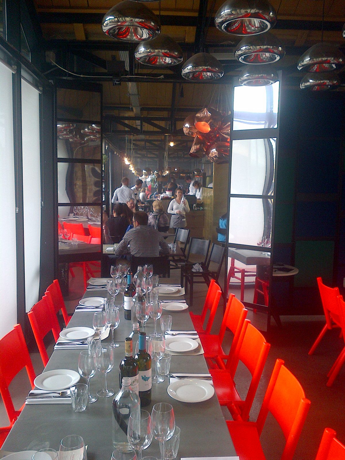 I was delighted to be asked to join several members of the trade at a lunch hosted by the agents for both Gaja and Bruno Giacosa on friday at The Dock Kitchen. A great venue and as ever I won’t go on too much about the food, but can safely say it is well worth a visit. We started with a few glasses of Spumante Extra Brut 2006, Bruno Giacosa on the sun deck. It is a soft and aromatic fizz, good and enjoyable if not complex, I am amazed it is 6 years old as it is so elegant and fresh. We were then seated and started to dig into Proscuitto, black figs & basil Frigatelli peppers, olives & ricotta all supported with Toasts: white beans, chopped beef & tomato. The two whites to accompany these were