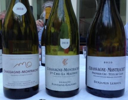In a “follow-on” from a similar tasting of 2008 White Burgundies (see here) a slightly different collection of ten current and past members of the trade and a few collectors joined together to taste 25 white Burgundies from the 2010 vintage. The first half of the wines were tasted at our hosts house and then the remainder at the really great Trinity Restaurant (another diner I have had at Trinity can be read about here). All wines were just poured from bottle and tasted as they are. The one exception is the Chablis which had been double decanted. The wines were tasted in 3’s or 4’s and within their communes. There are lots of vintage reports about the 2010’s it is viewed as a very good to excellent vintage for red and whites.