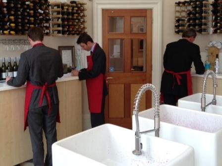 | The team (and aprons) in action. |