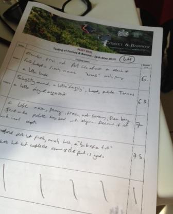 11) Churchill – 6.5/10 – Dark, brambly, savoury and rich but dry and rich. Lacked balance but then a good length…slightly hard to be sure about. Other scores 6,9,?,7.75,7.5,6,6,8.75. No real consensus at all here with scores from 6 to 9 and a ? Judgement reserved.