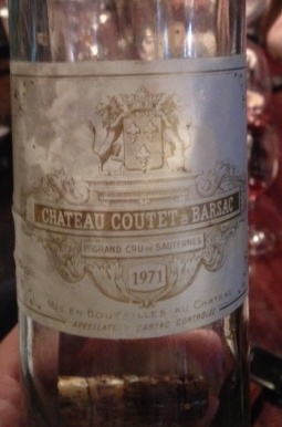 The “big bottle of the day” award went to a Jeroboam of Chateauneuf du Pape 1978, Mont-Redon which was a little muted and “whiffy” to start but settled out as a nice medium weighted mature wine with a little spice and a good balance. And so with the table emptying one last wine Coutet 1971 was served. I have had a few 1971 Sauternes and this is a good one, not over the top, elegant and charming but also serious. It was a terrific lunch!