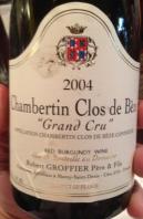 The steaks were on their way now so we moved to the reds, first up Chambertin Clos de Beze 2004, Groffier. A lovely wine now, with development to come. The fruit is red and black compote with a little creamy texture and some cheesecloth. The vintage is one that people like to knock to be honest, I feel that while it is not a stunning vintage or one that will make old bones those producers who have not forced things have made good and charming wines with fruit and good acidity, this is a good example and a good wine.