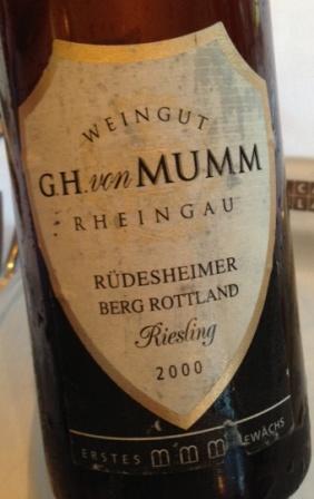 The “Kick-off” fizz was served blind and after brief guesses at Prosecco amongst other things it was revealed to be Sparkling St.Peray, Earl du Biguet from J.L et Francois Thiers* incredibly primary and soft. Given how good some of the still St.Perays are now you can see why still wine in more the thing in this commune now. The next wine was blind and served with an assortment of great starters. We all assumed that being from Mossy that it was Aussie but eventually he stopped stringing us along and revealed it was German, we got to Rheingau fairly swiftly from there…it was Rheingua Rudesheimer Berg Rottland 2000, Weingut G.H. von Mumm. I liked it, generous, waxy, mature with a complex gently fruited nose and well balanced.