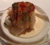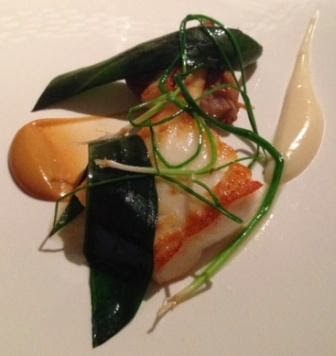Pol Roger 2002 opened the proceedings in style. Opulent but in check, quite rich, it is perfect from now on. The food came thick and fast – Crab, miso and pepper – starting us off as we moved to the Pavillon Blanc 2005 which if I’m honest was a little strange. There was a character on the nose that was familiar to white Bordeaux and I nearly went there with my “guess” but I eventually decided that the nutty, savoury finish meant it was a White Rioja with age on it. Clearly I was wrong but there you go. The bottle was in no way faulty but it did, as the chap who brought it said, match the other he has had…bit of a mystery I’d love to know if you have had a similar experience? The next course was delicious – Orkney scallop, cucumber, muscatel and scallop broth – and went well with Bienvenues-Batard-Montrachet Garnd Cru 2007, Leflaive. I adore Bienvenues Batard from Leflaive the 1999 being one of the greatest white wines I have ever had. This 2007 was quite open, not problematically so, but had a real, almost Meursault-like richness. The acidity is there and the overall wine is enjoyable but just a shade underwhelming on this showing.
