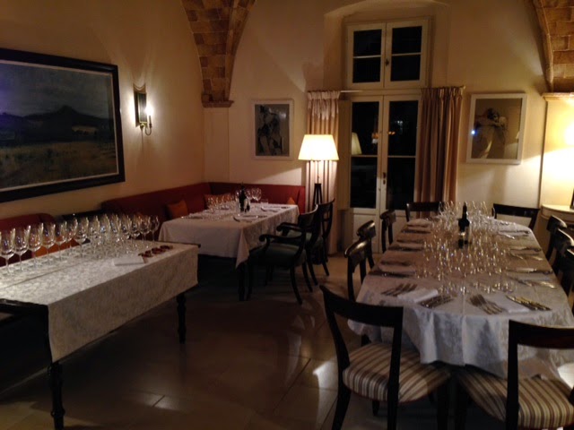 The next course (all the food was terrific but I am concentrating on the wines here) was of Il Pino di Biserno. The Pino (or “Pine”) is a second wine from younger vines and from a barrell selection. It drinks a little earlier and is a shade darker of fruit character to my mind.