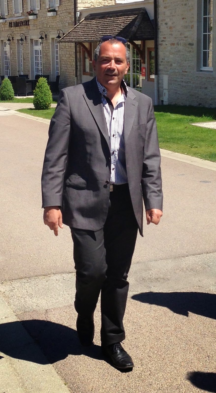 En route to Chassagne-Montrachet for the tasting below we decided to stop off at “Combettes Corner” to have a look at things – Meursault to the left and Puligny to the right etc. We then went to the top corner of Le Montrachet (pic below) to have an early morning loosener – Krug 1988, deliciously decadent, rich but not overly heavy – while then walking across the bottom of Le Montrachet and on towards Chassagne. To accompany this stroll we had a bottle of Corton-Charlemagne Grand Cru 2011, Bonneau du Martraywhich showed some real poise and elegance, balanced white fruit and strangely not too young but still very youthful (if that isn’t a contradiction). A quick hop back into the “van” and we were at our tasting.