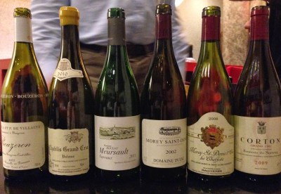 Santenay VV 2012, PYCM – I think this is the only red P-Y does. We tasted one older bottle (open 4 or 5 days) at the tasting then took a “fresh” one to lunch. The opened one was nice, the fruit a tiny bit bruised but good.