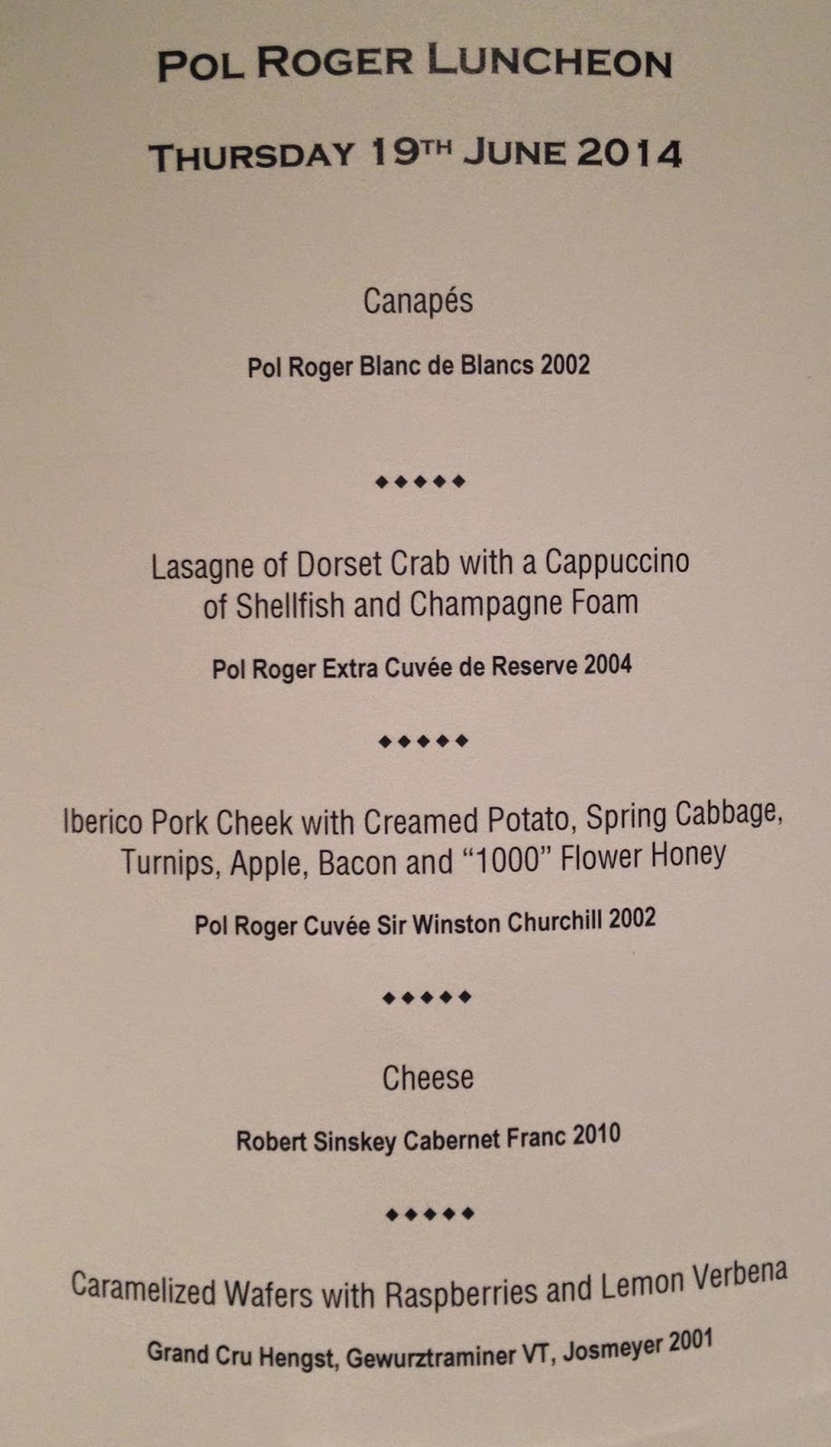 The wines started with Pol Roger Blanc de Blancs 2002, a wine in a lovely place right now, generous rounded fruit but in no way too bold or too round. Biscuity but not biscuits with lots of butter in them…elegant. If you own it then drink some soon, I have no doubt it will age very well but is too good now to be missed.