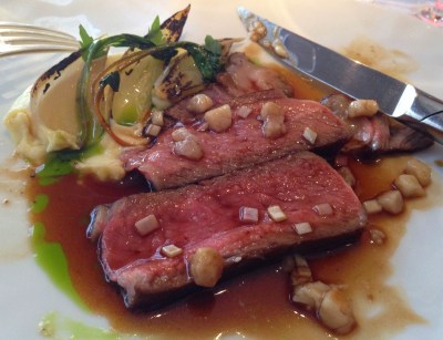 Cote de Boeuf with smoked bone marrow, shallot sauce, rainbow chard and lovage