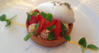 Wild Strawberry custard tart with lemon balm, lavender and mascarpone sorbet