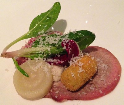 Breast & Croustillant of Pigeon with Confit of Vegetables and Trompettes de la Mort