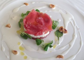 The Barbera d’Alba 2013 is a juicy wine with more red fruit than black and a nice freshness. We were then into the Barolo’s with the team relaxing in the breeze and many of the next batch of wines served blind. Barolo La Tartufaia 2010 is a serious wine with lovely richness, good extraction, a hint of leather and iron, this is for keeping. We then had two different versions of the Barolo 2011 from Giulia…one with the normal amount of Brunate in it and one less. The team were split on their preference, I found the version with Brunate to be bigger and a little more lush. There was on final wine – Renoir 2009 – thrown in as a curve ball, this is a blend of 60% Nebbiolo, 20% Barbera and 20% Pinto Nero. It is a wine her parents made (they still make wines under their own label from the same estate). It does very much taste of the region and we all liked it, as I had done a month earlier then I visited. There is fruit but also a degraded leathery element…It had been a splendid afternoon – so many thanks to Giulia, the even better news was that she agreed to meet us for dinner on Saturday at Trattoria della Posta, more of which later…