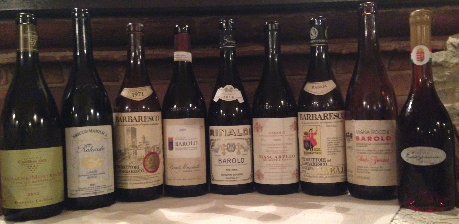 As I hope I manage to portray, this was a fabulous trip. It was the encore to a similar excursion to Burgundy last May. The aim was simply to introduce this band of vinous brothers – “Fiscali”, “Very dusty bottles”, ‘”Geronimo”, “Raw” and “Vestier” – to the joys of Piedmont and Piedmont wines. There had been a warm up dinner at Zucca which set the scene rather well. Events began on the Wednesday night “Chez Fiscali” with a nod to last year and a glimpse at May 2016’s potential trip to the Rhone.