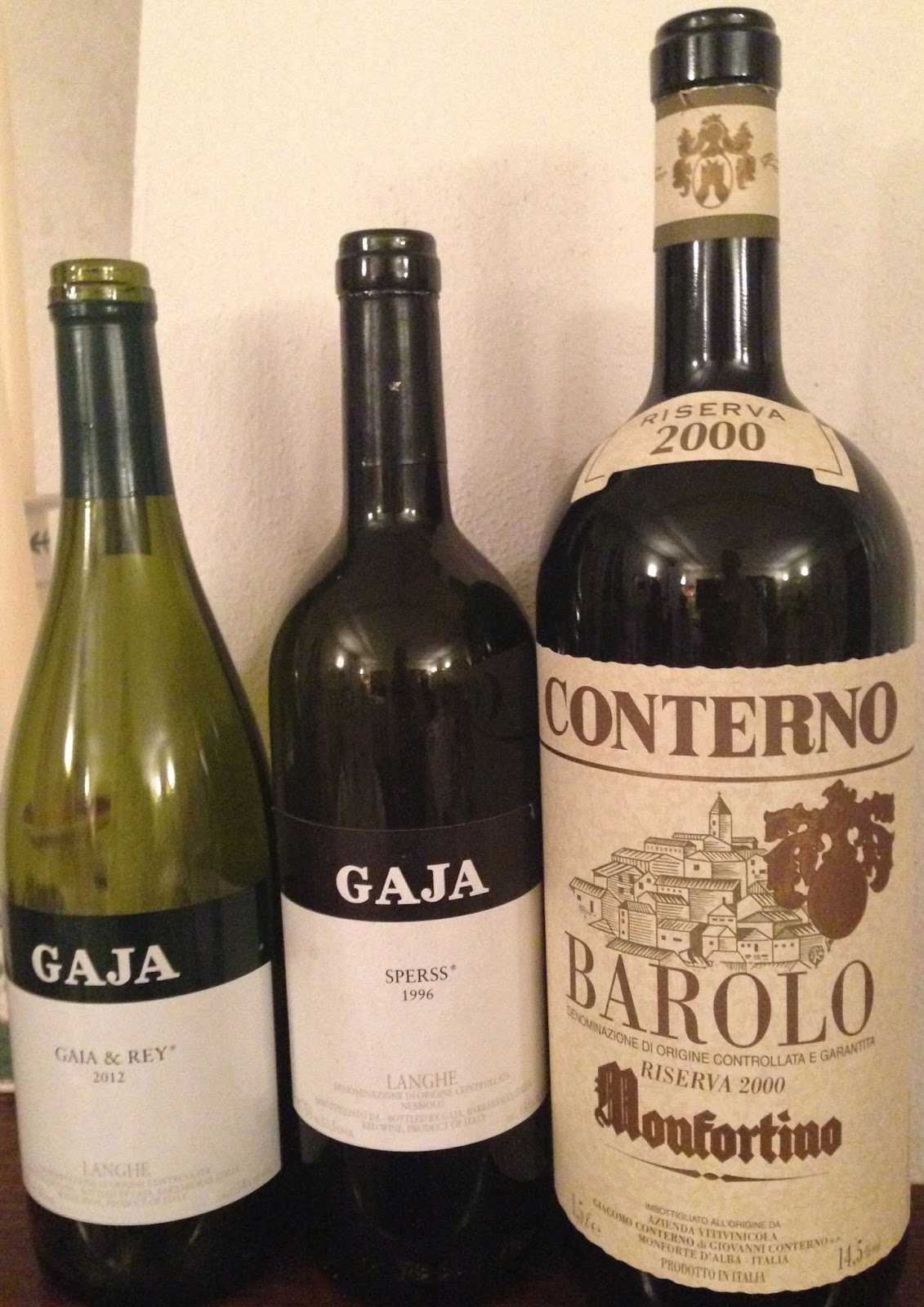 This was a little bit of a drive from the Hotel, 25 mins, but well worth it, once we got into the wines we were in the zone…we got a white from the region, Rolando Langhe Bianco 2013 from Bricco Maiolica, to accompany a white Burgundy that we had taken, Chassagne-Montrachet 1er Cru Les Macherelles 2012 from Francois Carillon.