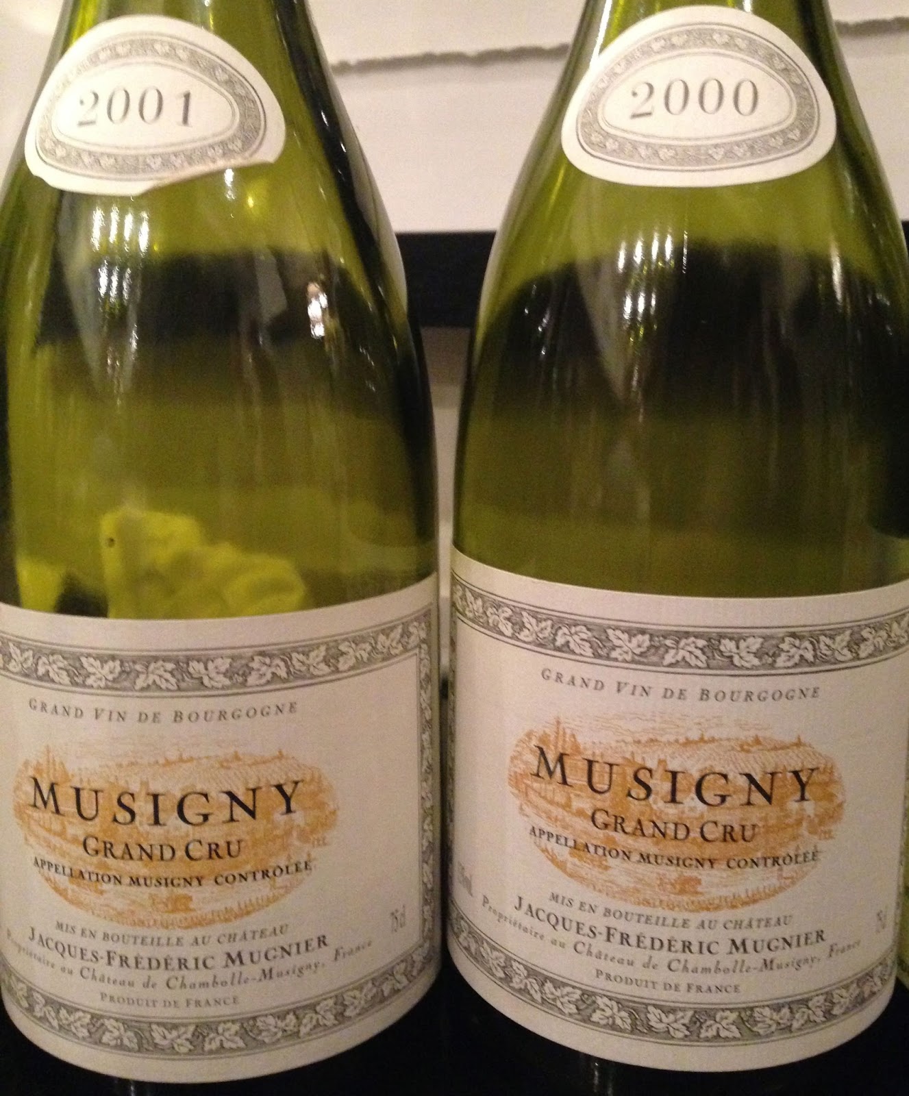 La Tache 2000 from DRC was next, as we had this and the Rousseau side by side I think we all felt the Tache was the older wine. The texture was the odd thing, a little murky and bruised. There was acidity there and I liked the fruit character, which admittedly had nothing like the purity of the Rousseau. It was a odd showing for La Tache, lacking focus, I looked at my notes from the fairly recent La Tache “decades and decades” dinner tasting and there is some similarity. Anyhow, this group would never let a disappointing bottle change the mood. The next pair, of magnums, quickly had smiles all round.