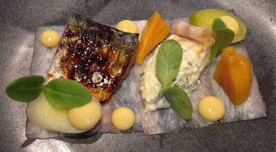 | Thinly Sliced Smoked Eel with Grilled Mackerel, Golden Beetroots and Sweet Mustard |