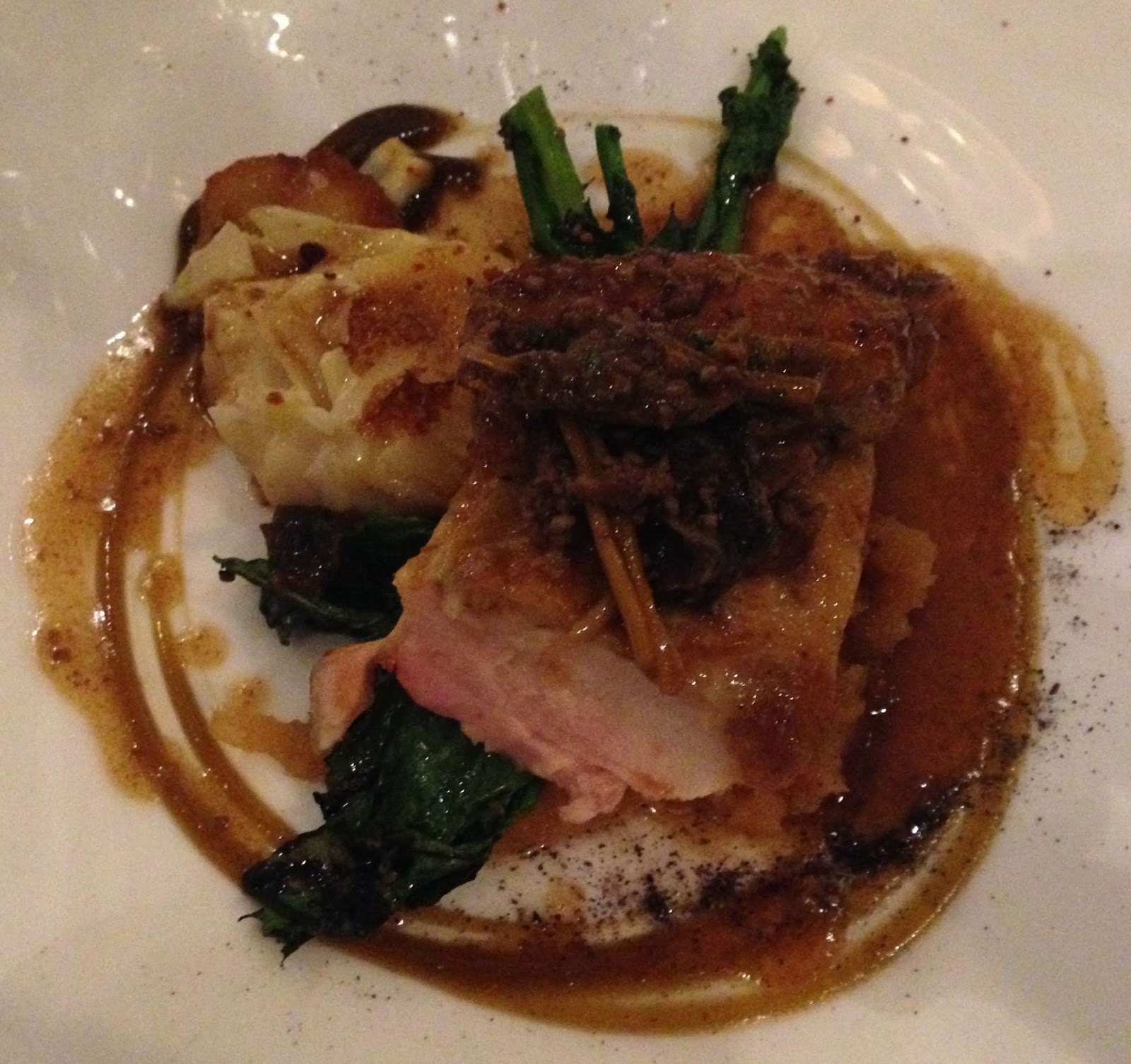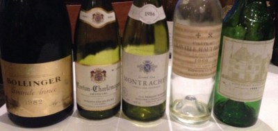 BUT…then another trifecta was shown. The Moueix flight! Petrus 1960 was tropically high toned, as always with Petrus, stunning, iron like, extravagant, complete, so textured, so dense with some good acidity, succulent…just so “Petrus”. Trotanoy 1955 was a delight, such a good vintage, iron-like richness, blood and meat, a lovely maturity with good acidity, almost a mocha note, magical finish, so moreish. Very different to the Petrus but complimentary. Latour a Pomerol 1949 (more – rather a lot more – of which coming on another blog soon) had more sinew, grip, a savoury edge, lovely grittiness, a shade of bovril, slightly dry toffee finish. By this stage it was already a dinner of a lifetime but wait there is more!