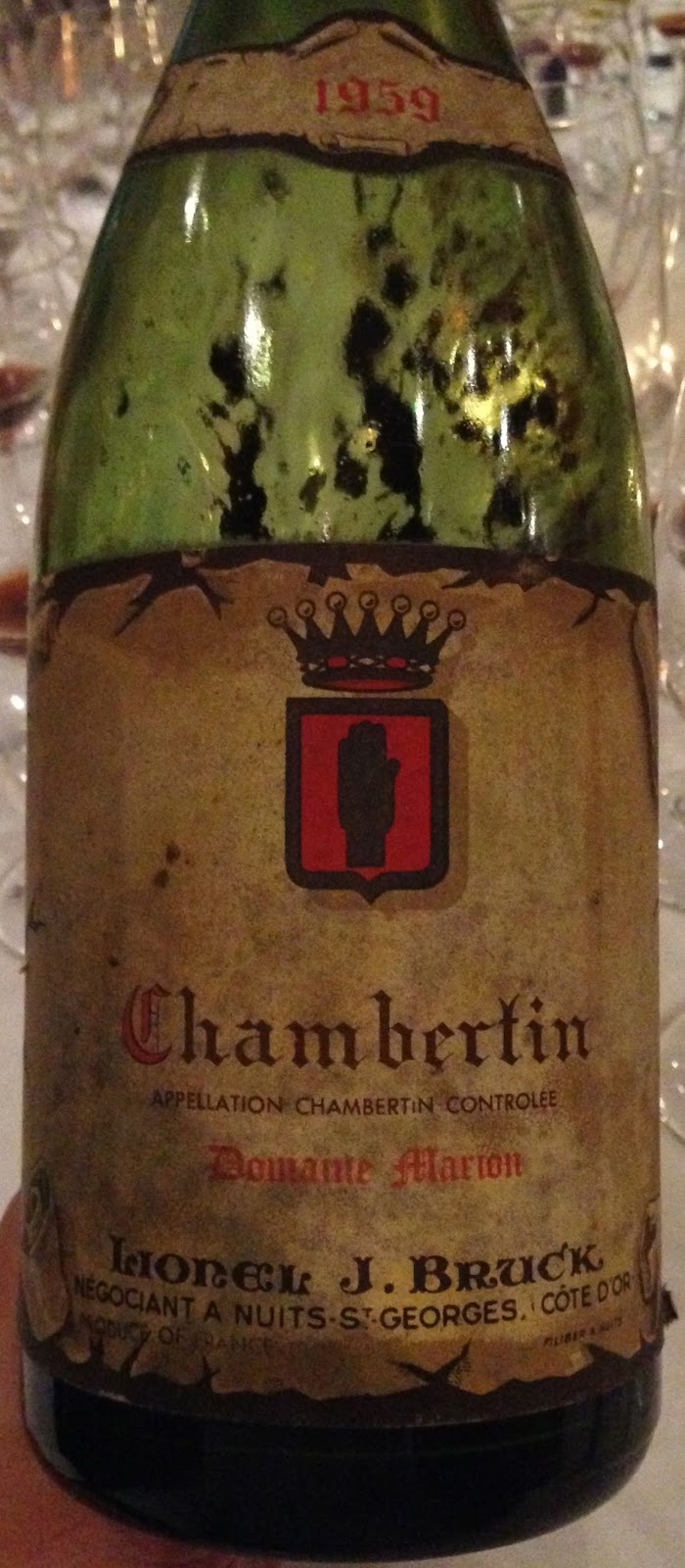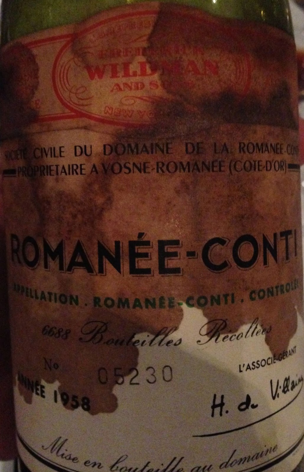 The next two wines, both Burgundy, couldn’t have been much more different. First there was Chambertin Grand Cru – Domaine Marion – 1959 from Lionel.J.Bruck en Magnum which had an extravagant nose and lusciously dark core, having this blind I think we were almost all in the Rhone and possibly this wine may have had some help before bottling from that area! It just had a “pepped” up feel to it with a funky grip. The next wine – Romanee Conti Grand Cru 1958 – just simply could not have been more different. Pure elegance, tea and sweet degraded fruits, good energy, gentle and effortless, sweetness again and rosewater delicacy, long and persistent. Special.