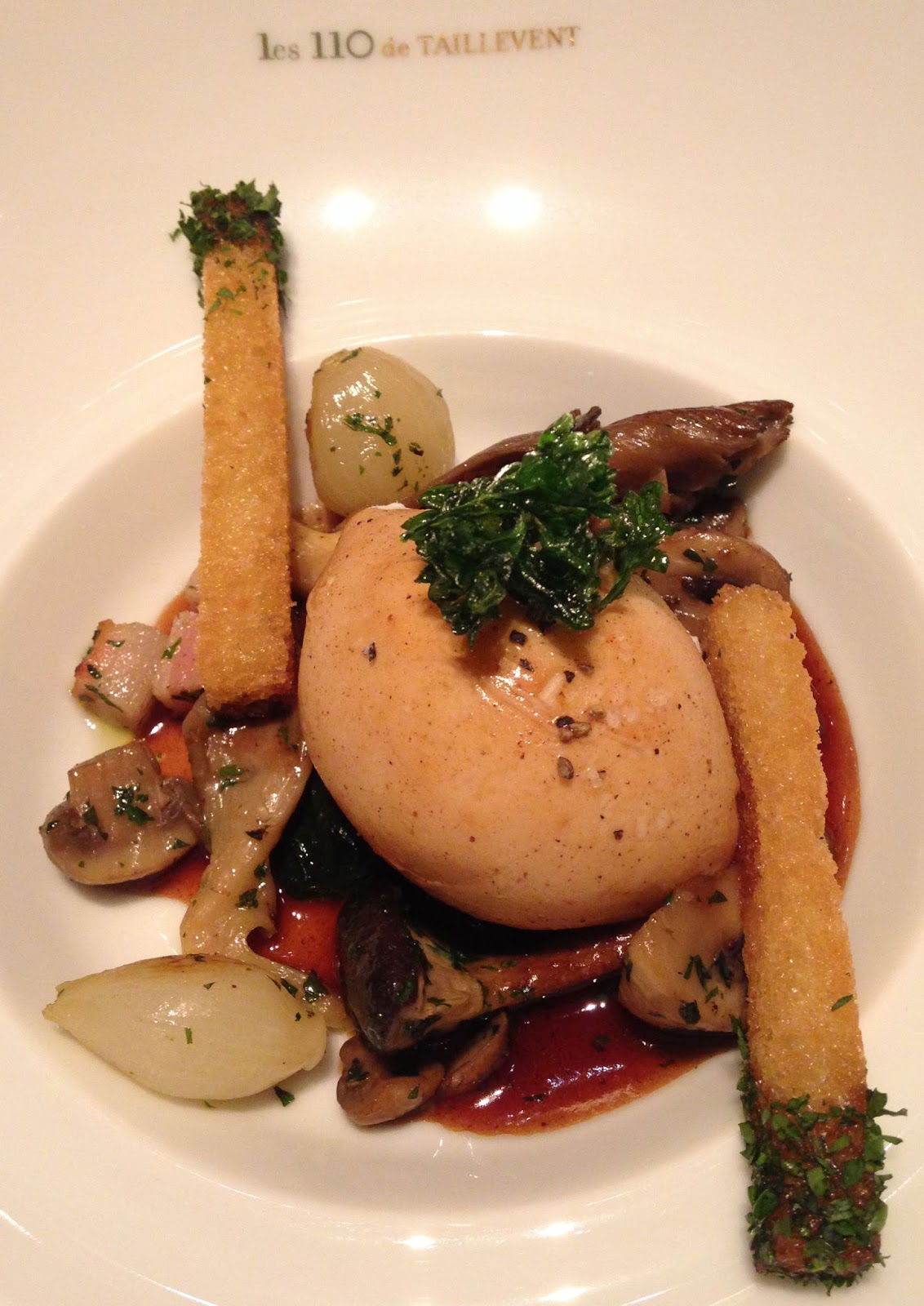 Duck egg, poached, lardorns, champignos de Paris, baby onions