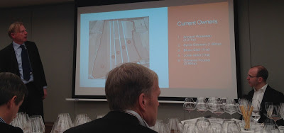 The “producers” roll call is a tricky one as barrels have been sold and deals done in the past. Now there are 5 owners who, significantly, all own a strip the length of the vineyard, this is so important as there are three soil types from “top” to “bottom”: