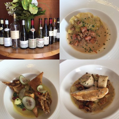 As we cracked on with the starters it was time for some Chardonnay with Californian leading the way before two Burgs. Hapgood Chardonnay 2012, Brewer-Clifton was lovely, rich and full but not smokey, more about the intensity of rich tropical yet mellow fruit. There is acidity there but behind the richness, waxy. Went very well with my Curried smoked haddock with spiced fish pastilla, crisp onions and coriander.