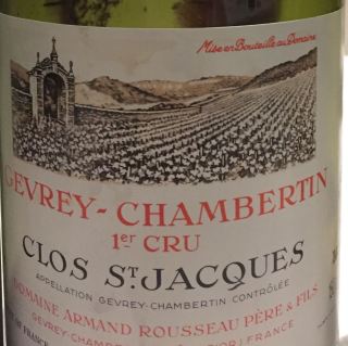Another Burgundy mag next, any Rousseau wine is a treat and in magnum even more so – Gevrey-Chambertin 1er Cru Clos St Jacques 1988 was everything you would want and expect. So good in fact that it blew a fuse in the restaurant. This was tightly coiled with red fruit power, poised and persistent and with stunning depth. None of the tougher, acidic nature you can get with 1988. Just a super super wine – a treat. A little bit more about Clos Saint.Jacques.