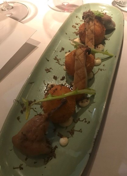 Taleggio Aranicini with confit quail legs, autumn truffle, sauteed king oyster mushroom and cauliflower