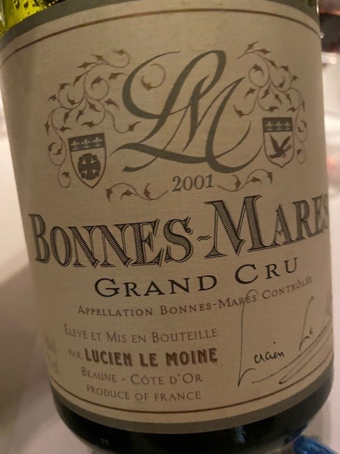 Bonnes Mares Grand Cru 2001, Lucien le Moine – now this bottle had a bit of a story having not been well stored but it belied that. Possibly more remarkably it was the only Burgundy – red or white – of the whole evening. The wine was from only the 3rd le Moine vintage. It was decadent and sweet with a little orange rind and stewed fruits. This is the third bottle I have had and all were good.