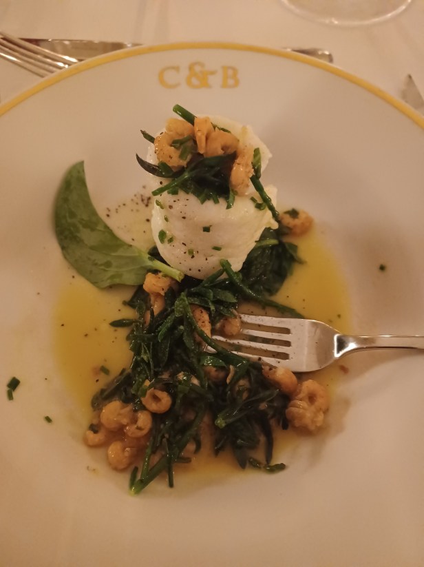 As Turbot gave way to Taglierini we had a bit of a show stopper in Montrachet Grand Cru 2013, DRC and it takes a bit to stop this show. The 2013 vintage I think is one of the most misunderstood in Burgundy. It was the ultimate game of two halves. Those that were so fed up with a poor season weather wise picked early so as to have something to make wine from and sell. Others either brave or possibly foolhardy waited and they got their reward. The Montrachet here was bold and yet focused and certainly multifaceted. A “gourmand” wine as ever, superb and very long.